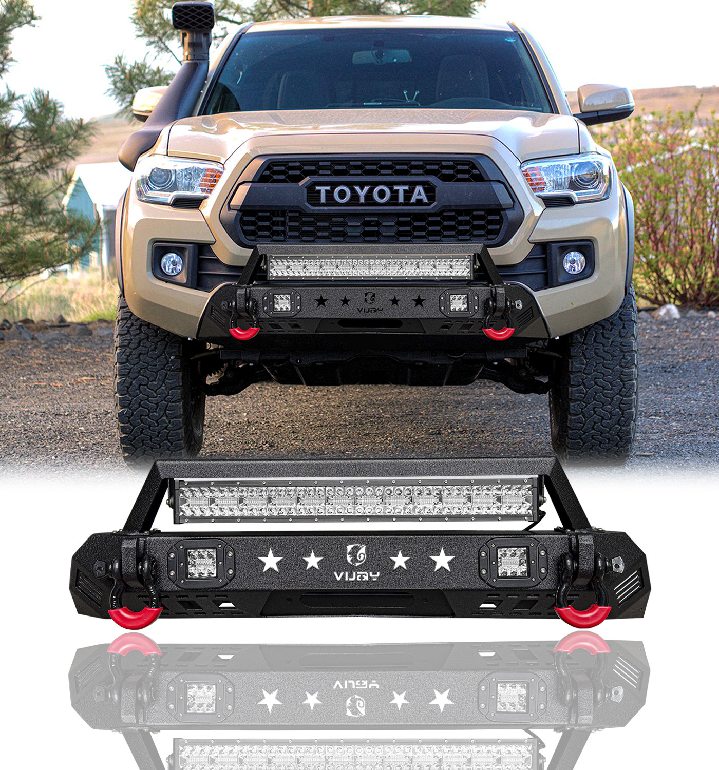 Stubby Steel Front Bumper with Winch Plate & LED Lights for Toyota Tacoma 2016-2024