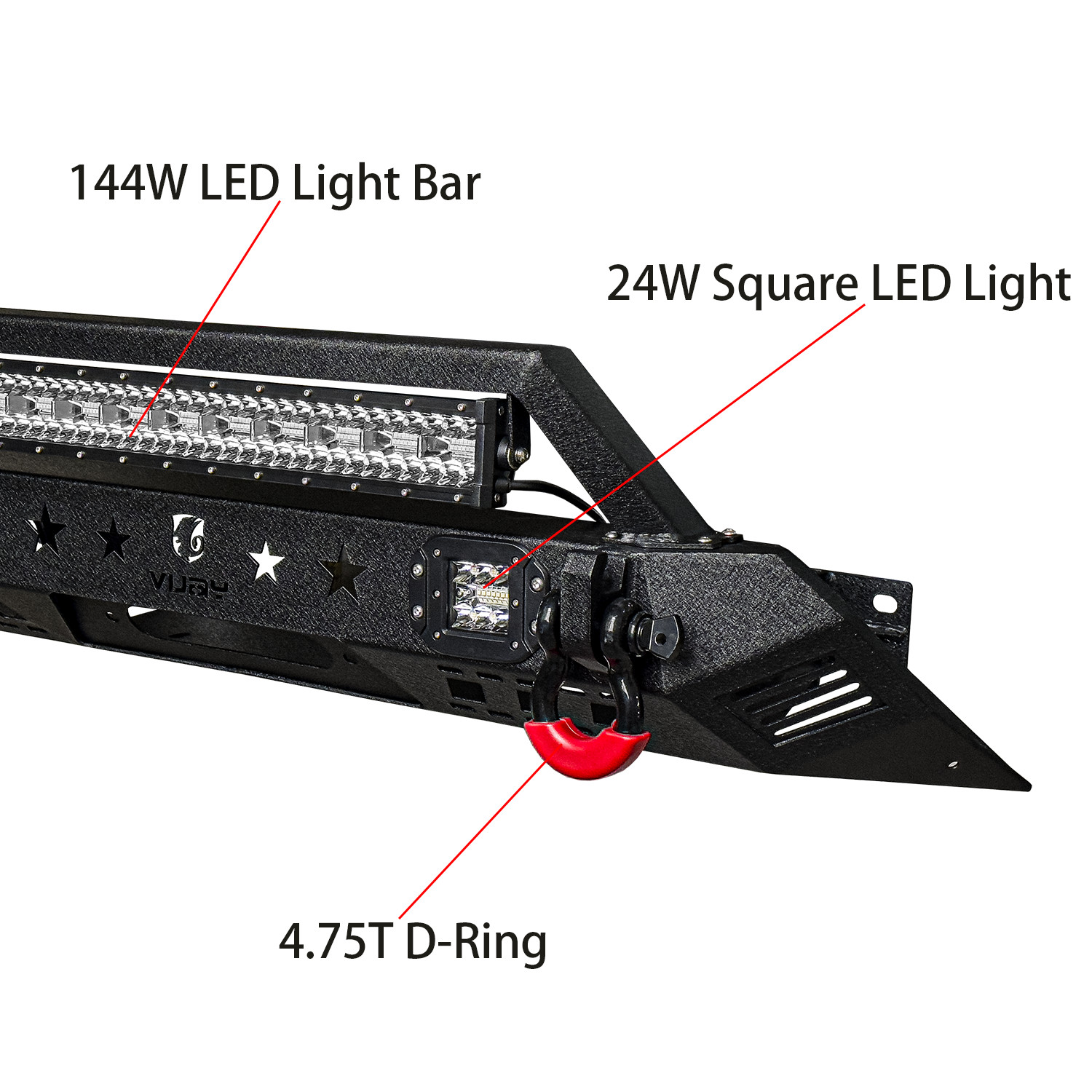 - Winch Plate & Lights: Includes a built-in winch plate, a 144W LED light bar, and two 24W square LED spotlights.